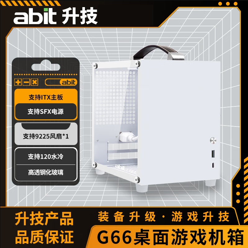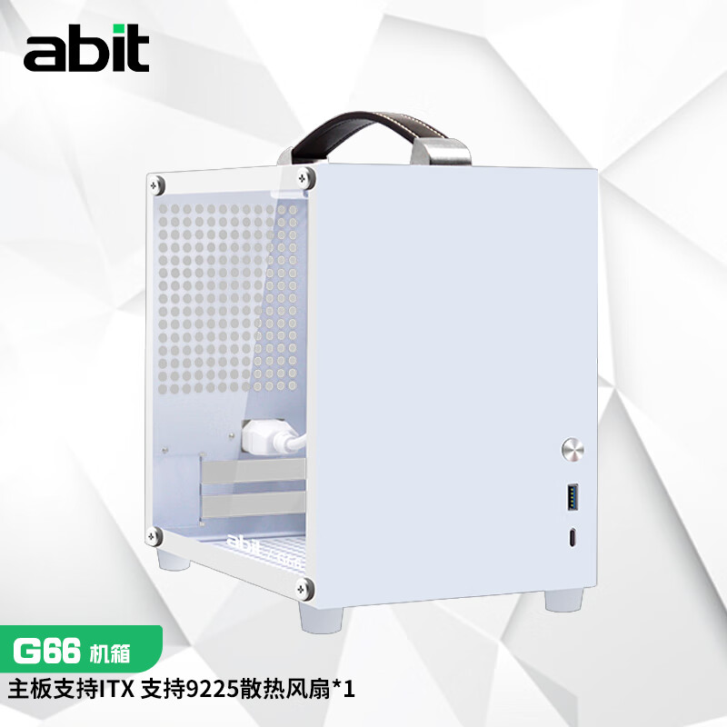 升技(abit) G66机箱 迷你时尚手提机箱 钢化玻璃侧板 皮质提手 G66 雪山白