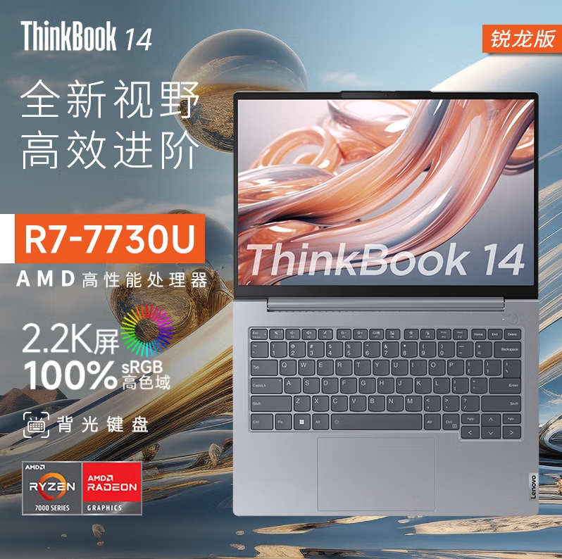 联想ThinkBook 14 2024锐龙R7-7730U 2.2K屏 16G 1TB固态 银灰 商用办公高性能轻薄笔记本电脑
