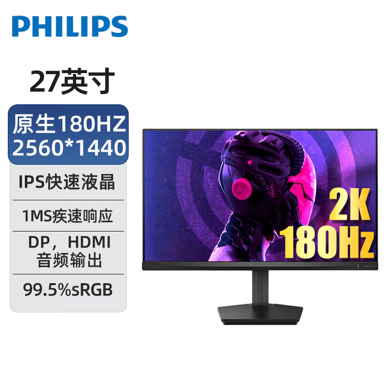 飞利浦27M2N3500F 27英寸2K超清原生180Hz FastIPS快速液晶0.5ms低蓝光HDR电竞游戏显示器