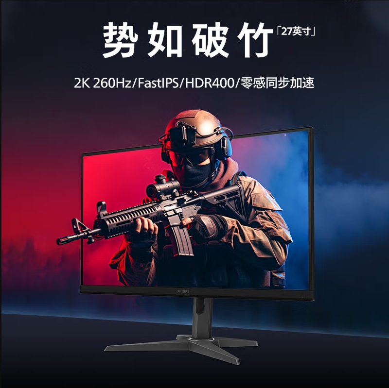 飞利浦 27M3N5540P 27英寸2K 260Hz Fastips快速液晶 HDR400 10bit 1ms 低蓝光显示屏