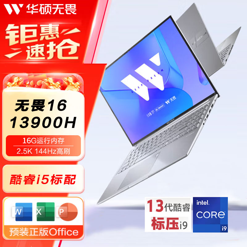 华硕无畏16 i9-13900H 16G/1T 银色13代酷睿标压 16英寸Pro级学生手提办公本笔记本电脑轻薄本