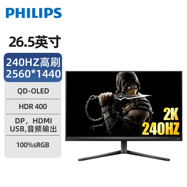 飞利浦27M2N6500 27英寸2K原生240Hz 0.03ms显示屏OLED防烧屏硬件护眼10bit HDR400