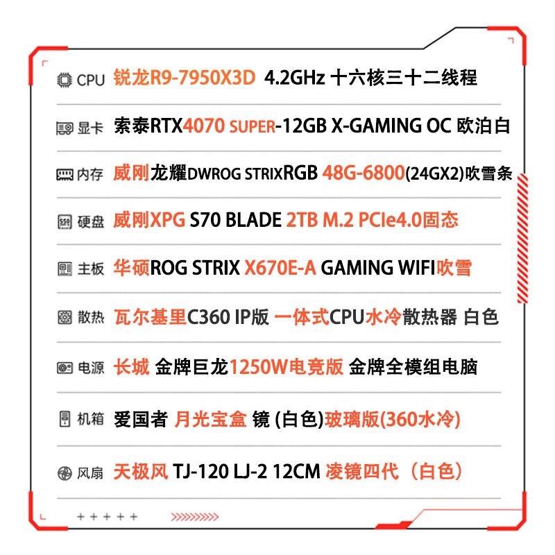 黑神话·悟空 AMD 7950X3D/华硕X870-P WIFI/4080s纯白电竞游戏电脑单主机