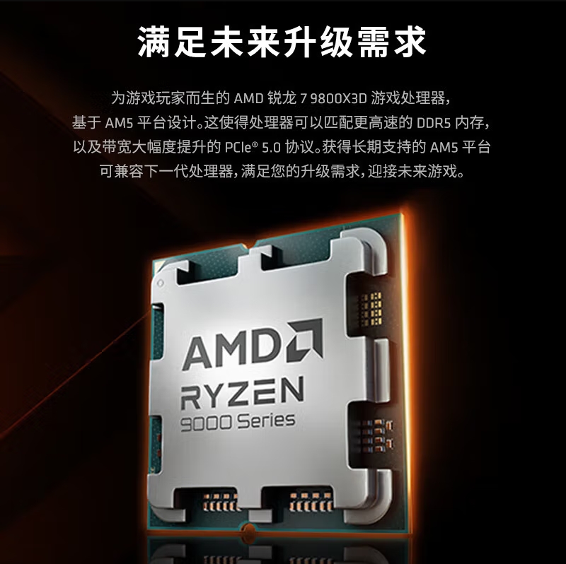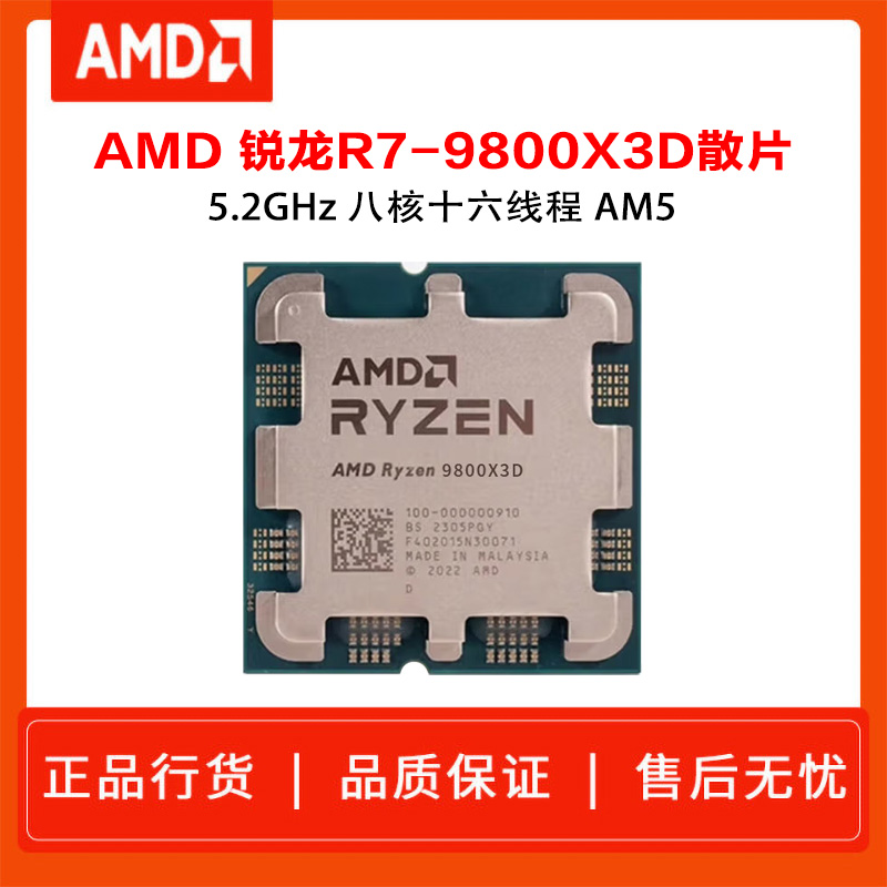 AMD锐龙7 9800X3D 散片 8核16线程104MB游戏缓存 加速频率至高5.2GHz盒装CPU畅玩黑神话悟空