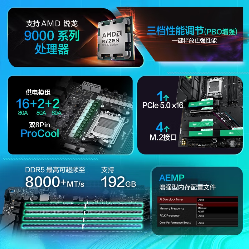 华硕ROG STRIX B850-F GAMING WIFI主板 CPU 7800X3D/9800X3D/9700X(AMD5)