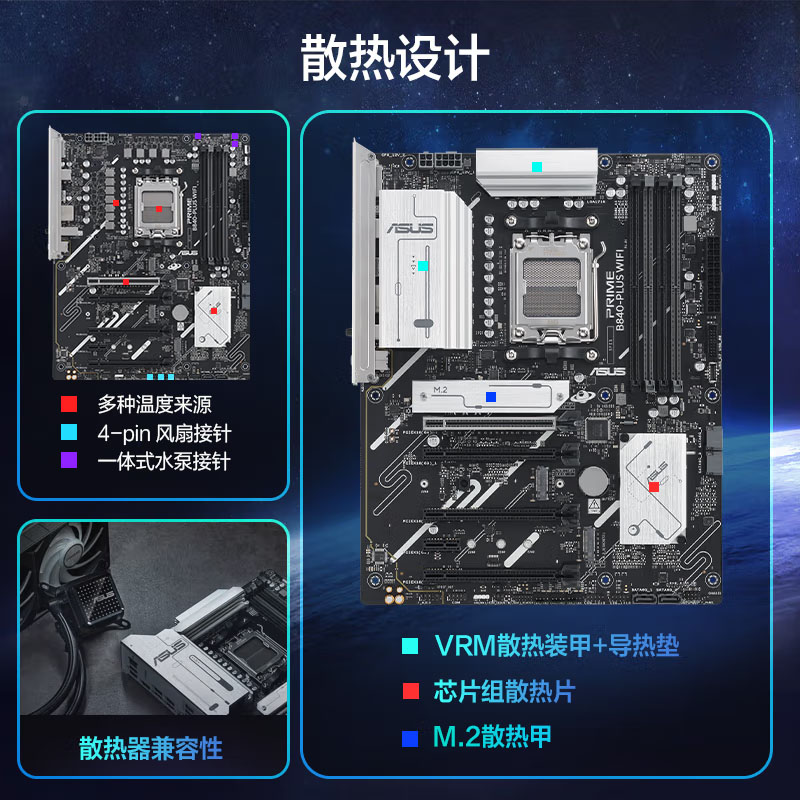 华硕(ASUS)PRIME B840-PLUS WIFI主板 支持7800X3D/9800X3D/9600X(socket AM5)