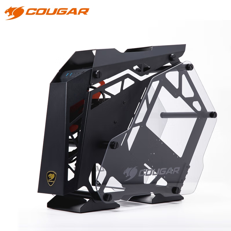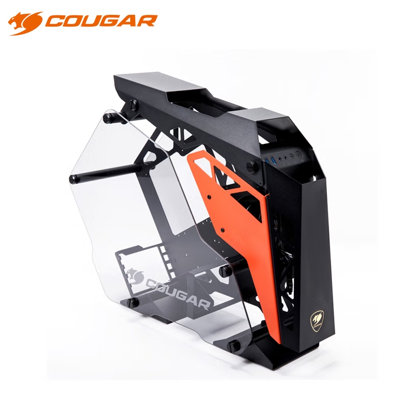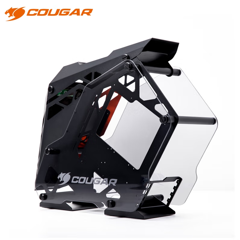 骨伽(COUGAR)征服者mini 黑橙 台式机箱游戏水冷侧透异型主机箱