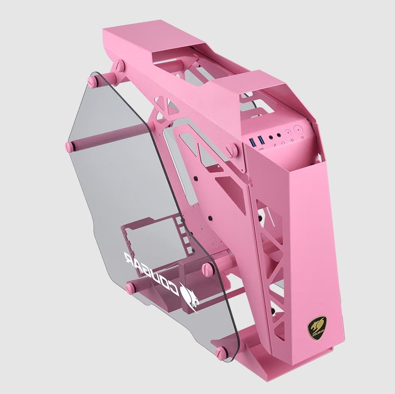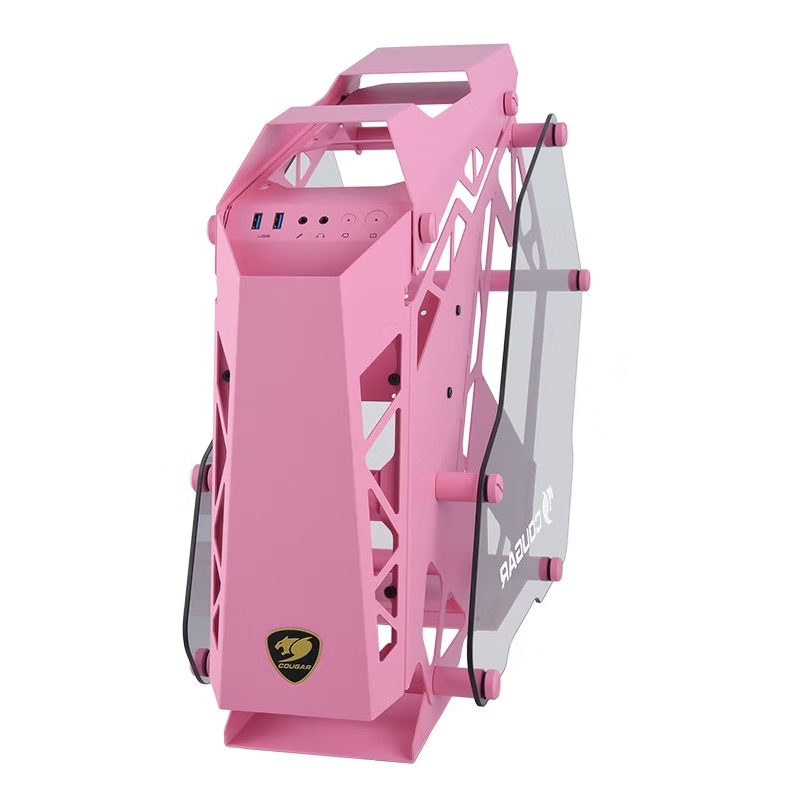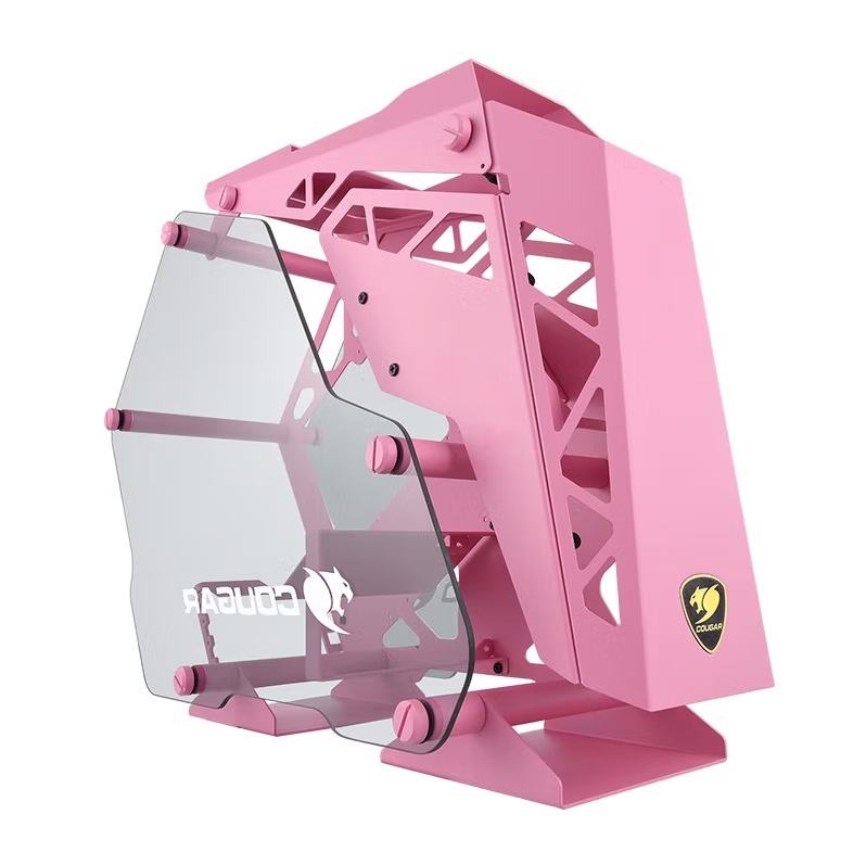 骨伽(COUGAR)征服者mini 粉色 台式机箱游戏水冷侧透异型主机箱