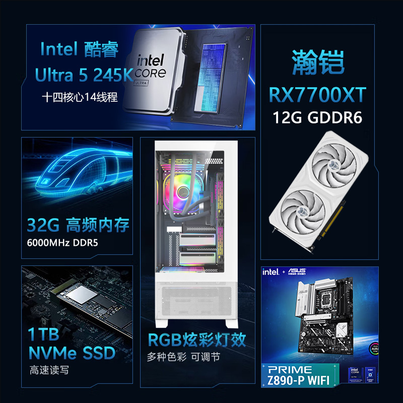 【酷睿Ultra 5 245K主机】酷睿Ultra 5 245K/Z890/32G/1TB/RX7700XT电竞游戏主机