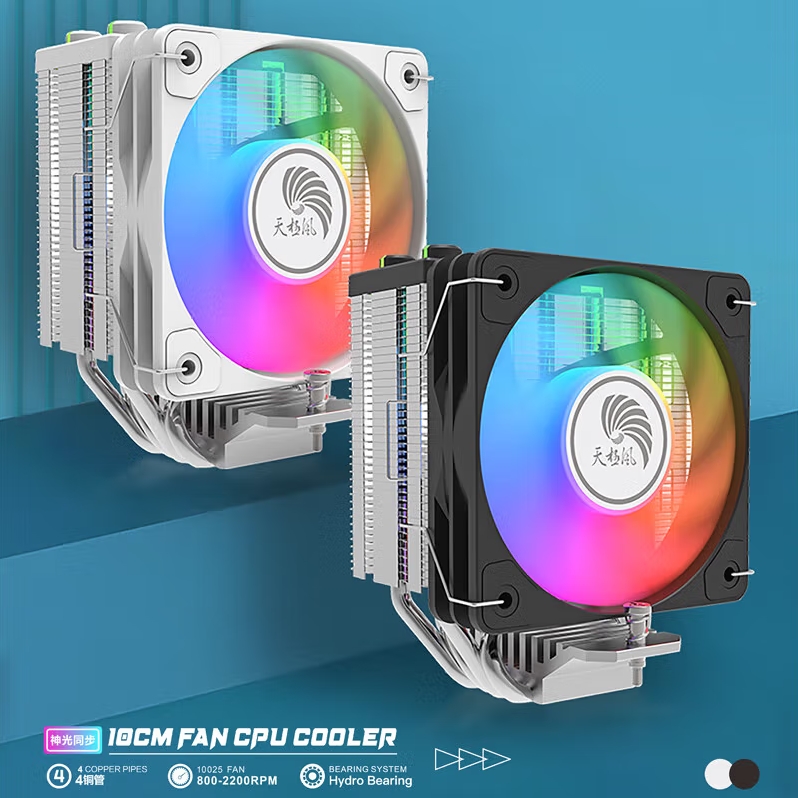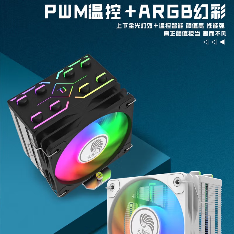 天极风J-8 黑色四铜管 ARGB CPU风冷散热器台式机电脑1700静音风扇无限镜顶盖