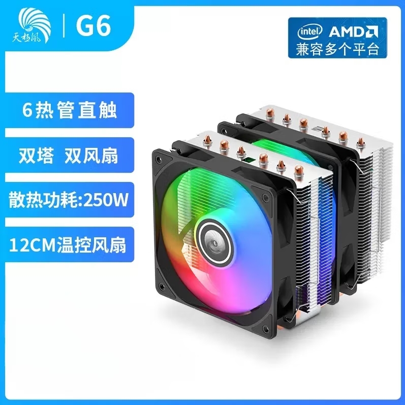 天极风G6 双塔六热管风冷散热器台式机电脑CPU双风扇温控超频AM5