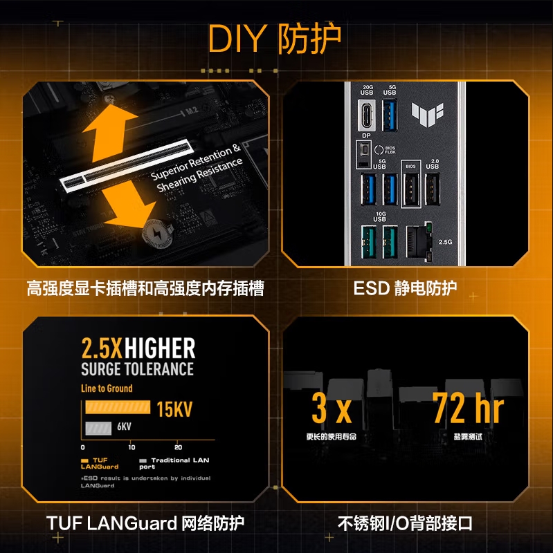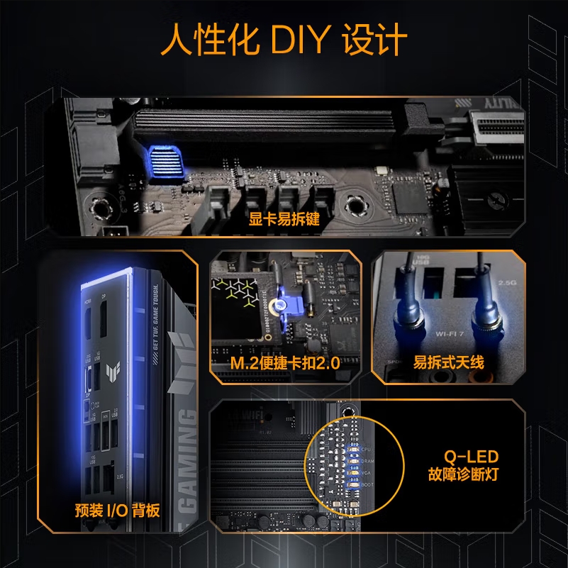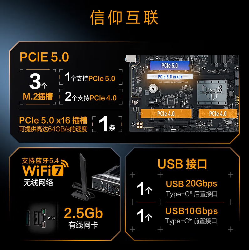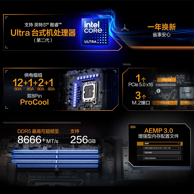 华硕TUF GAMING B860-PLUS WIFI主板 支持 CPU 265KF/245KF/230/225 (Intel B860/LGA 1851)