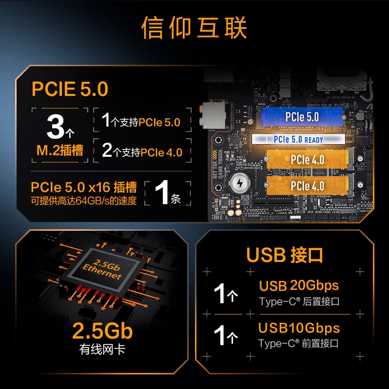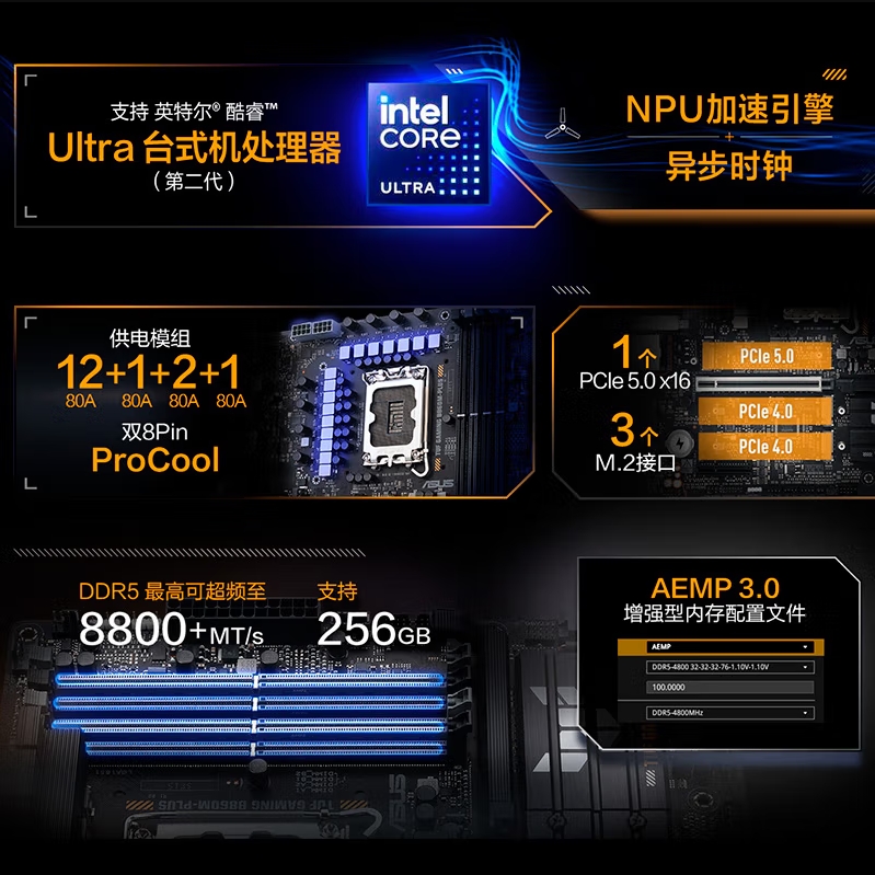 华硕TUF GAMING B860-PLUS WIFI主板 支持 CPU 265...