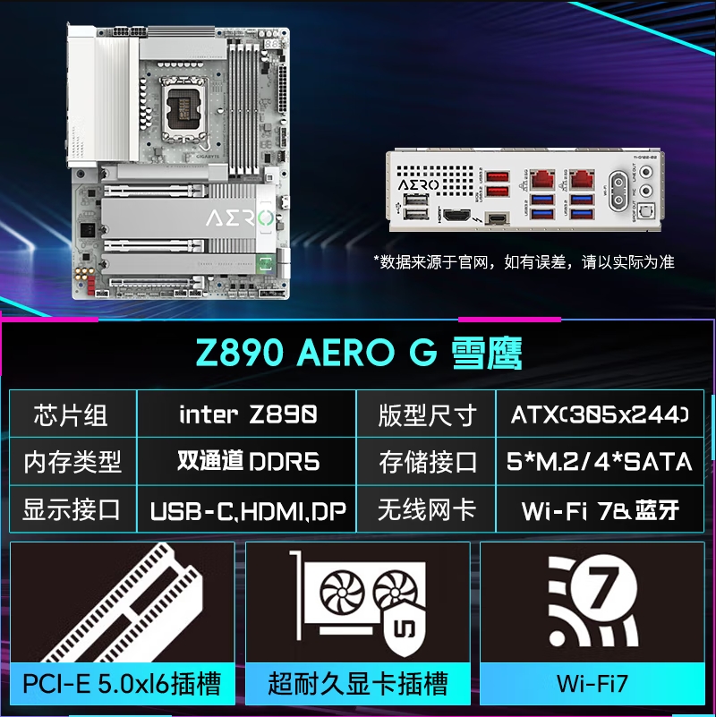 技嘉(GIGABYTE)Z890 AERO G雪鹰大板 LGA 1851 DDR5主板 支持CPU Ultra U9-285K