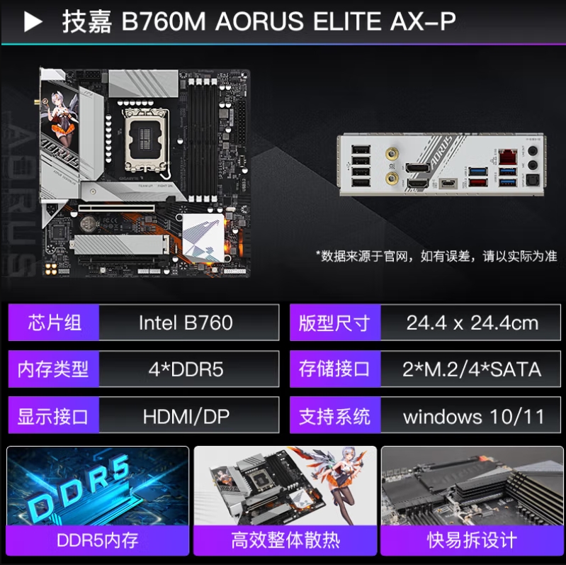 技嘉 B760M A ELITE AX-P 雕妹主板 支持CPU 13900、13700KF