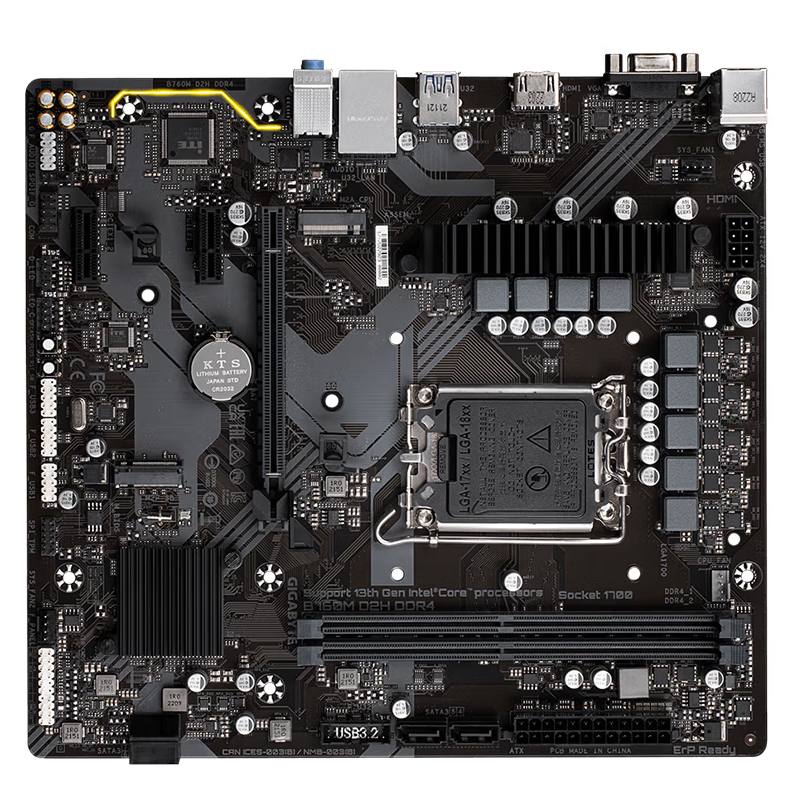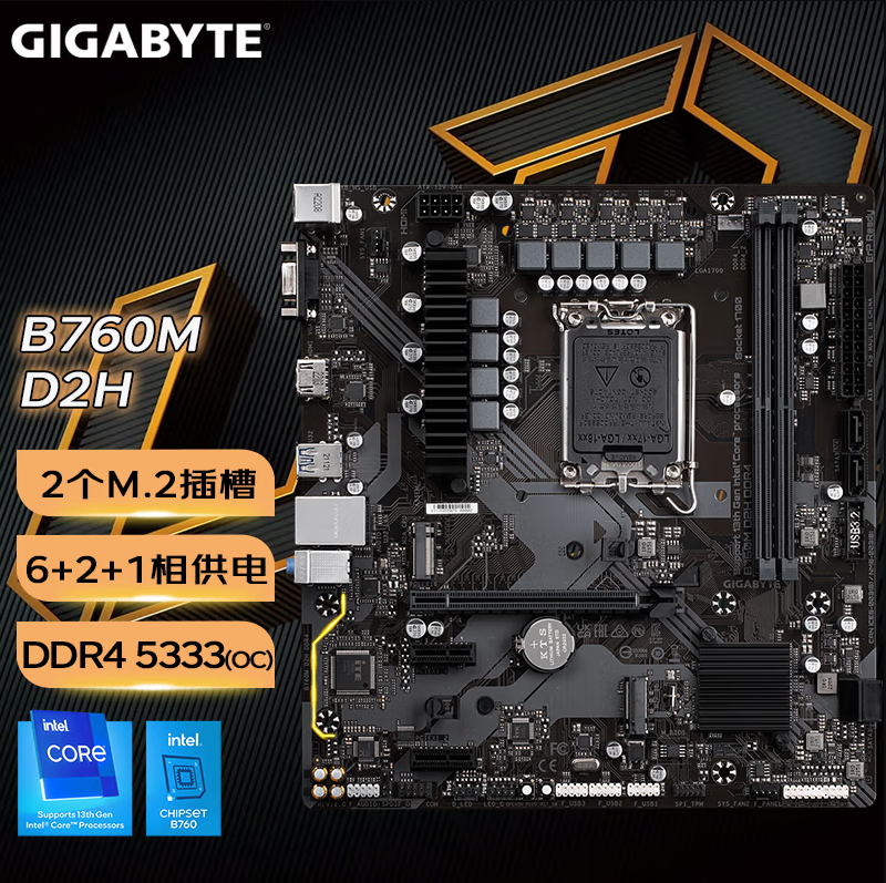 技嘉(GIGABYTE)超耐久 B760M D2H DDR4 主板支持CPU 1390013700KF