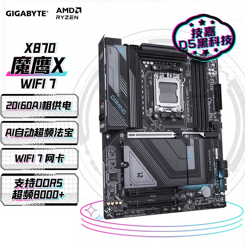 技嘉(GIGABYTE)魔鹰X X870 GAMING X WIFI7主板DDR5支持AMD CPU AM5 9900X