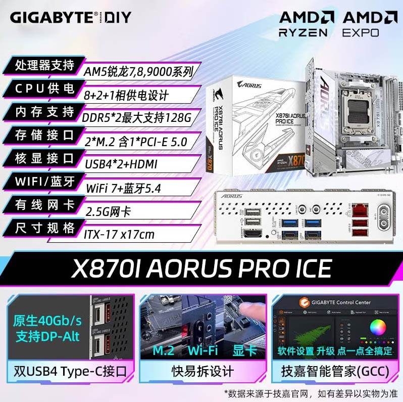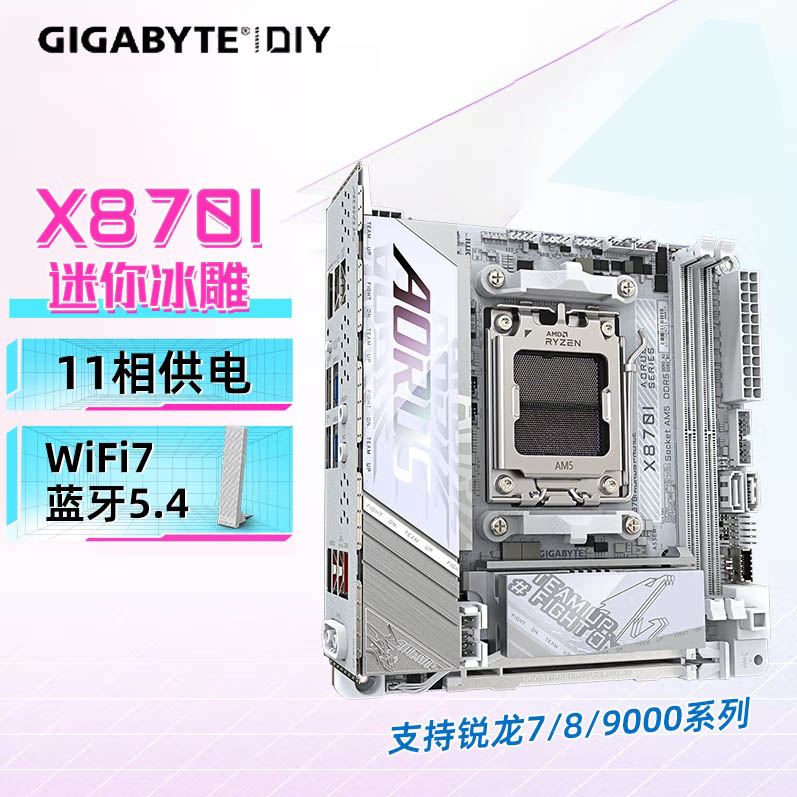 技嘉 X870I AORUS PRO ICE 迷你冰雕主板 支持AMD CPU AM5 9900X/9700X/7800X3D
