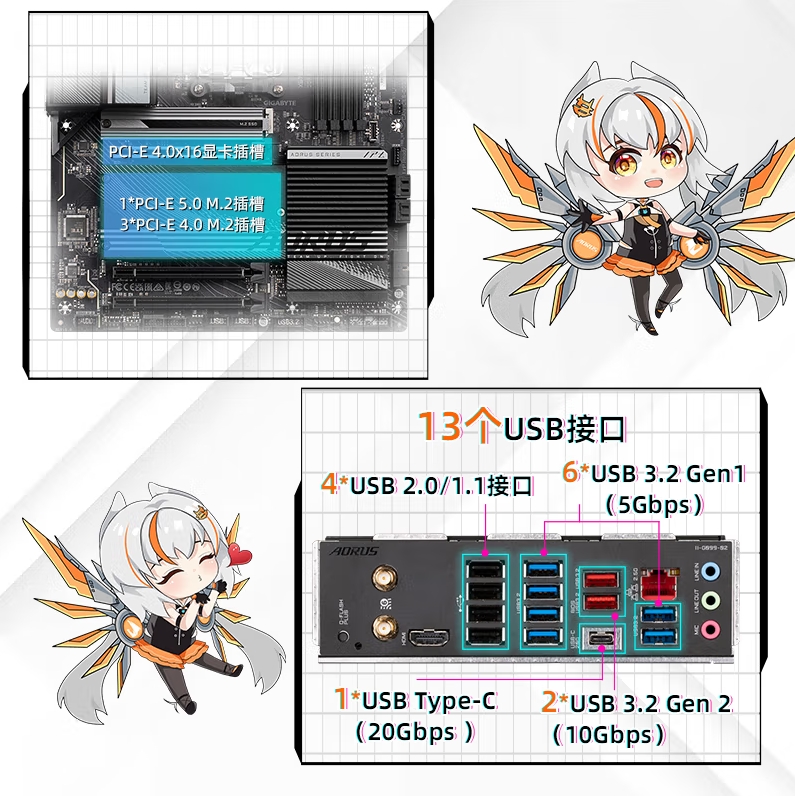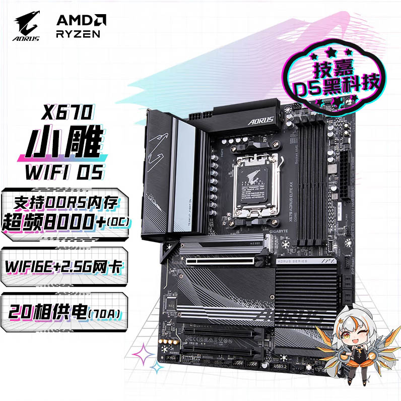技嘉(GIGABYTE)小雕WIFI X670 AORUS ELITE AX WIFI6主板DDR5 支持AMD CPU AM5