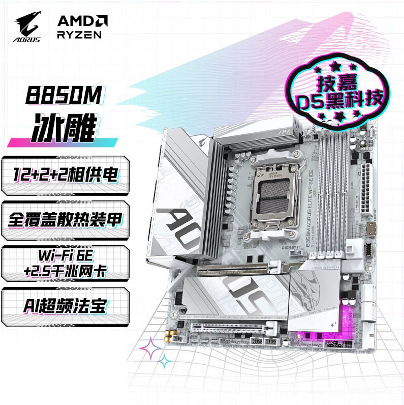 技嘉(GIGABYTE)冰雕B850M AORUS ELITE WIFI6E ICE主板DDR5支持AMD CPU AM5