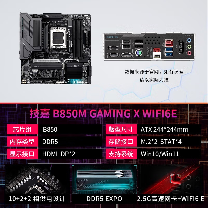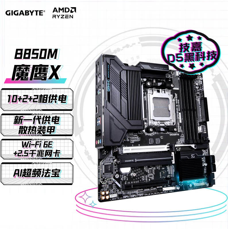 技嘉(GIGABYTE)魔鹰X B850M GAMING X WIFI6E主板DDR5支持AMD CPU AM5 7900X3D
