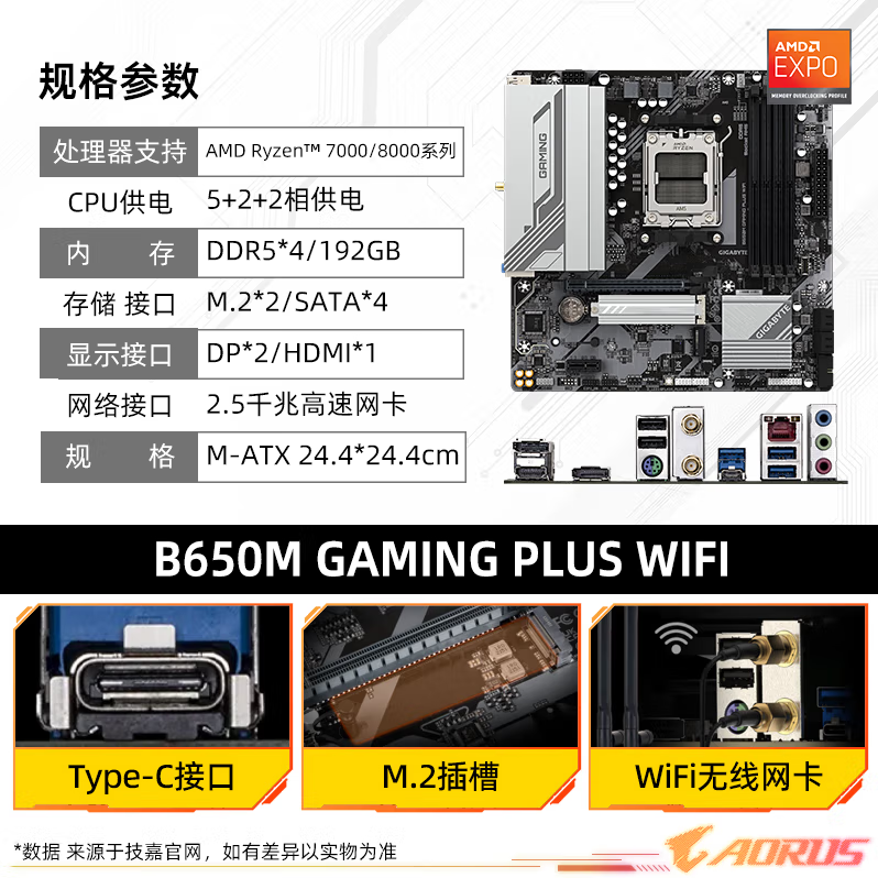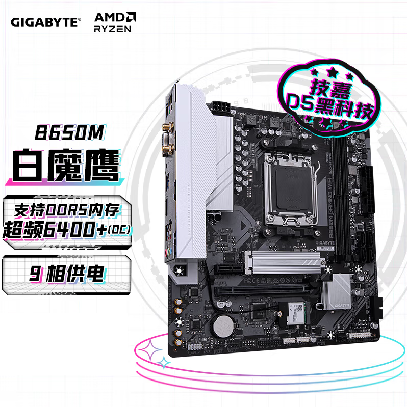技嘉(GIGABYTE)白魔鹰B650M GAMING WIFI 主板支持DDR5 AMD CPU AM5 7950X3D