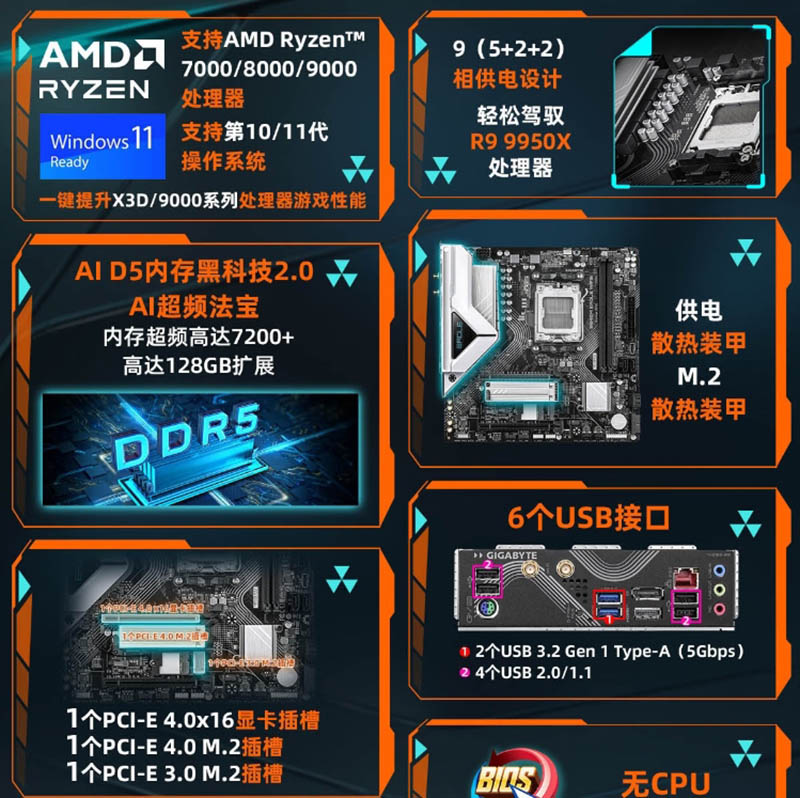 技嘉(GIGABYTE)猎鹰B840M EAGLE WIFI6主板DDR5支持AMD CPU AM5 7950X3D/7900X