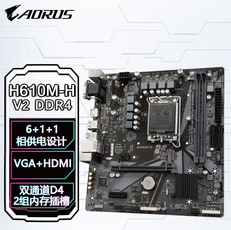技嘉(GIGABYTE)H610M H V2 DDR4超耐久主板 支持intel 12400F/12490F/12600KF