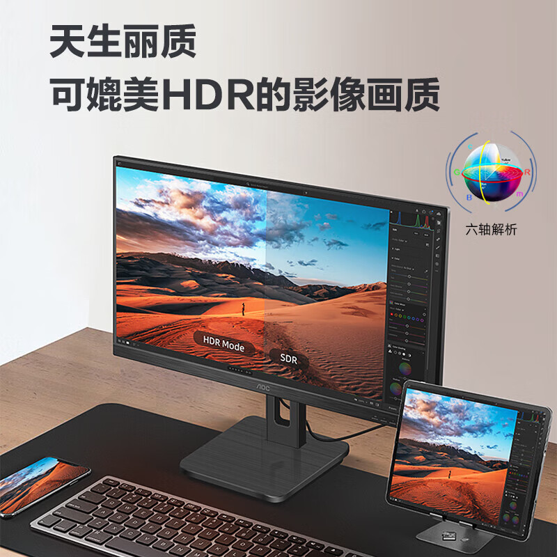 AOC 27寸 Q27P10 2K高清 IPS广视角 100HZ 快拆旋转升降支架 家用 办公 液晶电脑显示器