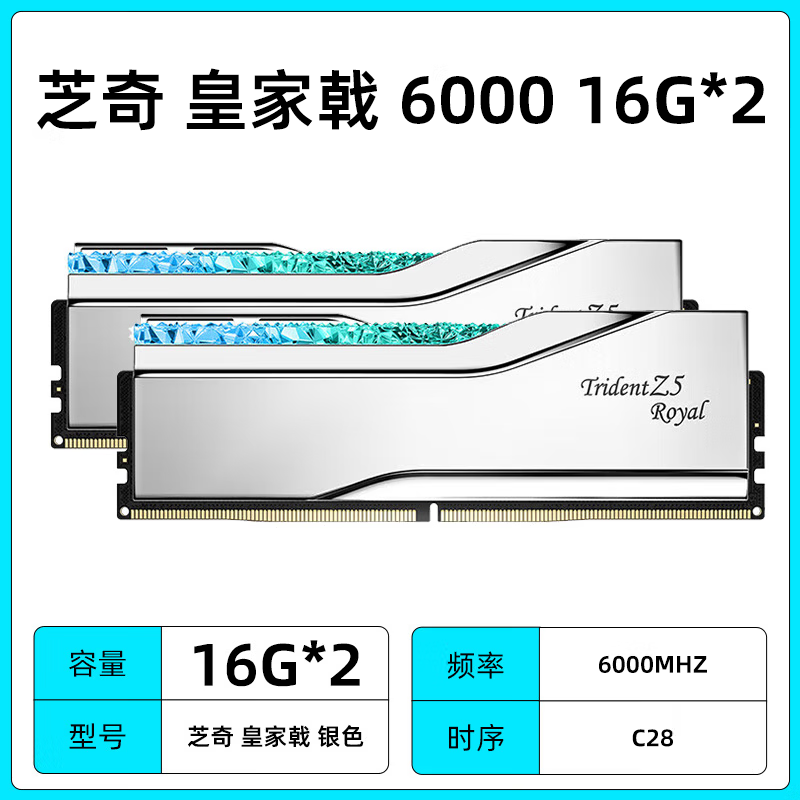 芝奇(G.SKILL)皇家戟 32GB(16Gx2)套装 DDR5 6000频率 EXPO版RGB灯条-银色/C28