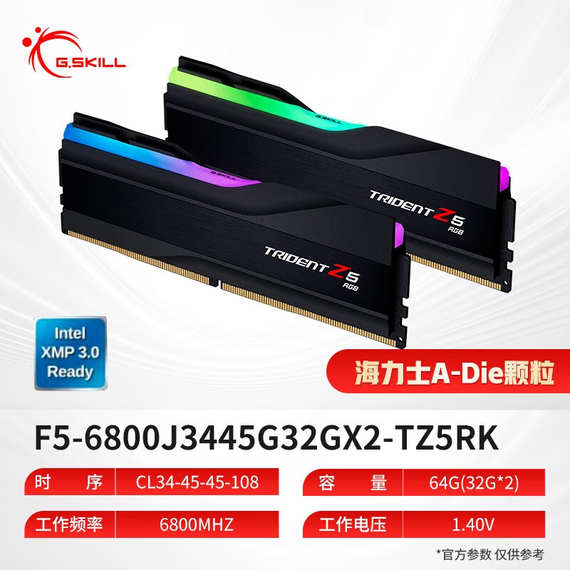 芝奇(G.SKILL)幻锋戟XMP 64GB(32Gx2) DDR5 6800 A-Die/C34大容量台式机RGB内存灯条套装