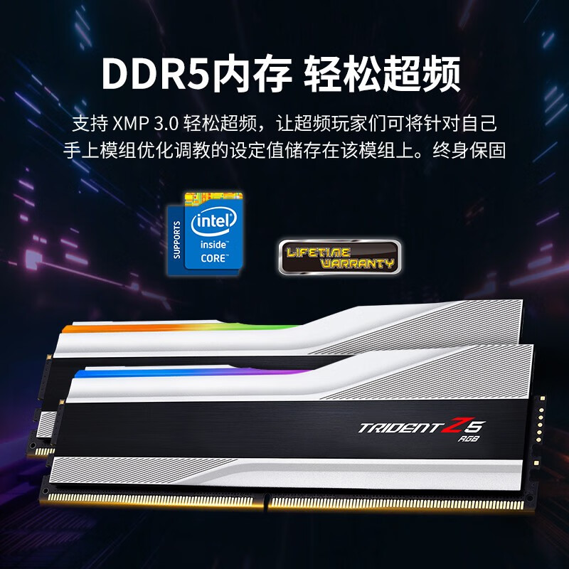 芝奇(G.SKILL)幻锋戟XMP 32GB(16Gx2) DDR5 6800 A-Die/C34大容量台式机RGB内存灯条套装