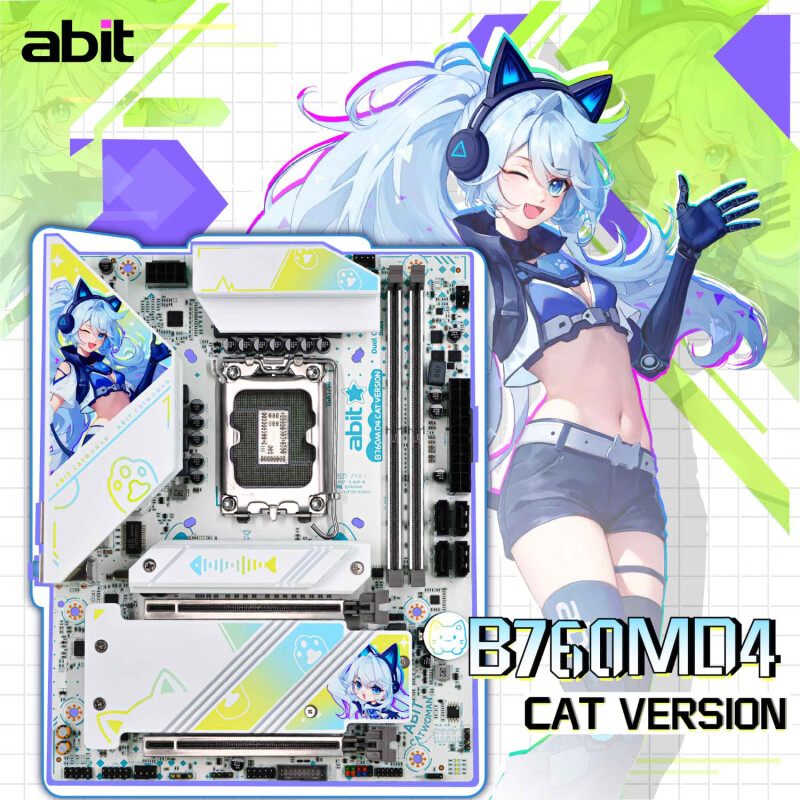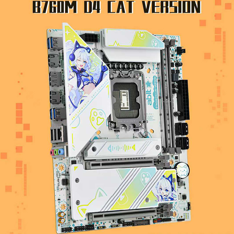 升技猫娘B760MD4 CAT VERSION主板 支持DDR4 Intel B760/LGA1700 2.5G网卡散热马甲