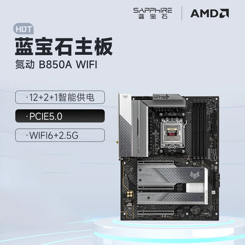今日特价 蓝宝石 氮动 NITRO B850A WIFI主板 支持AMD 锐龙9000/8000/7000系列处理器