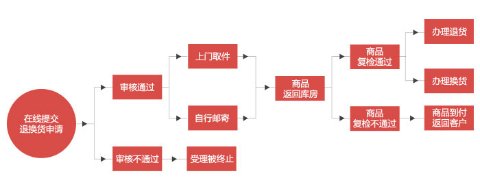 卓兴为您提供了在线受理退换货的服务,您只需要登录您的卓兴商城账户,在“我的订单—退换货单”页面中在线提交申请信息即可!具体操作流程如下: