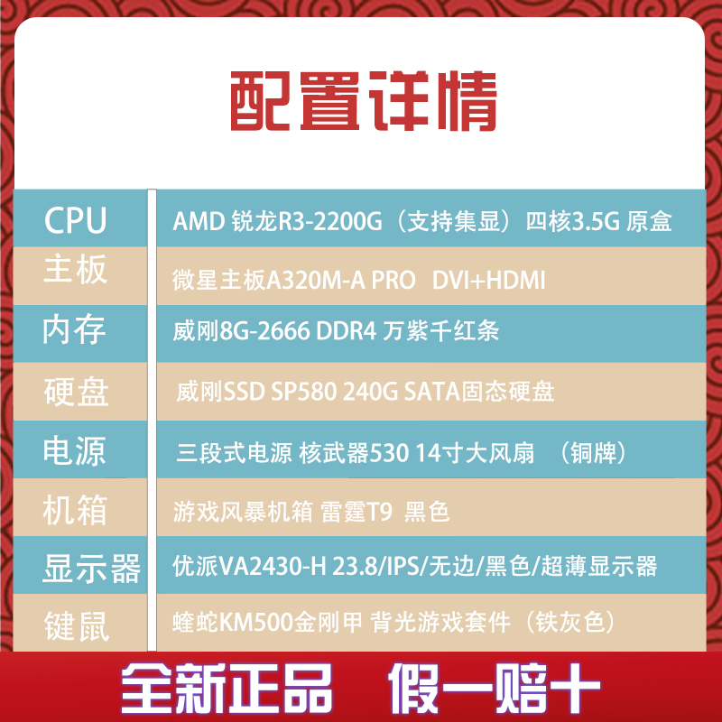 微星/AMD 2200G四核24英寸办公家用型一体机电脑主机台式整机全套